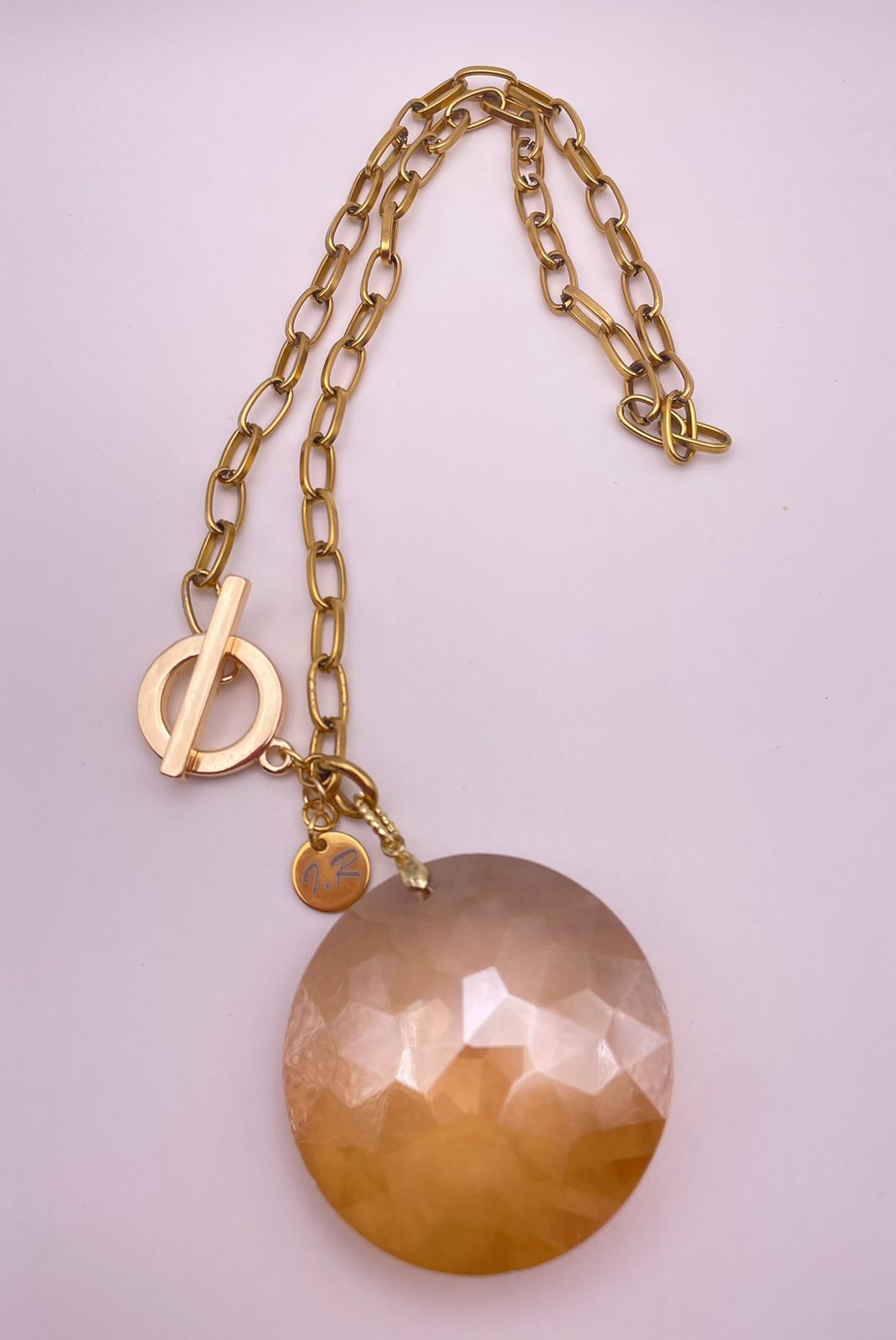 Cadena en aluminio con cierre baño de oro y cristal
