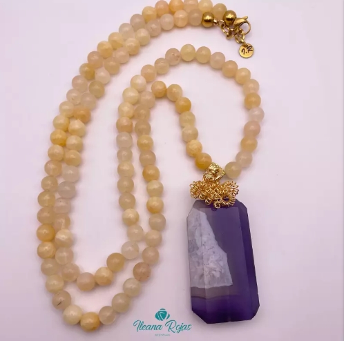 Gemas en ágatas amarillas muy tenue con una piedra natural en tono uva .