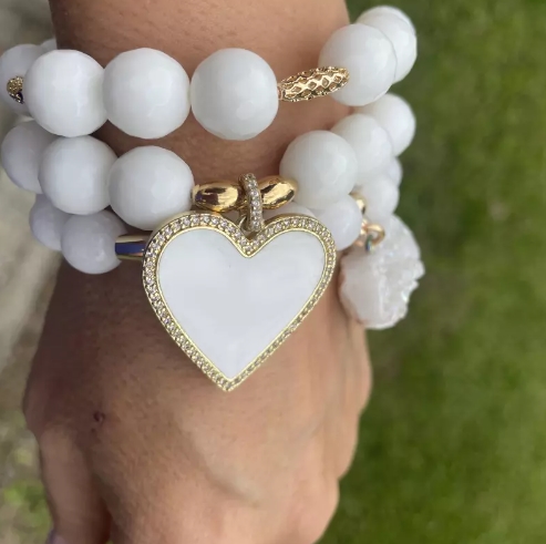 Hermoso juego blanco muy básico, corazón con circonias, una drusa blanca, separador en baño de oro.