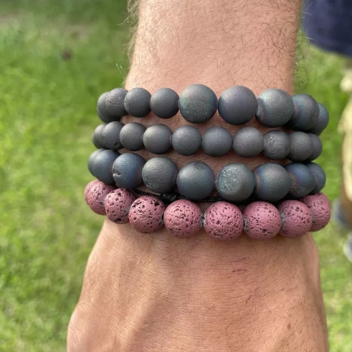 Juego de pulseras piedras volcánicas y drusas naturales.